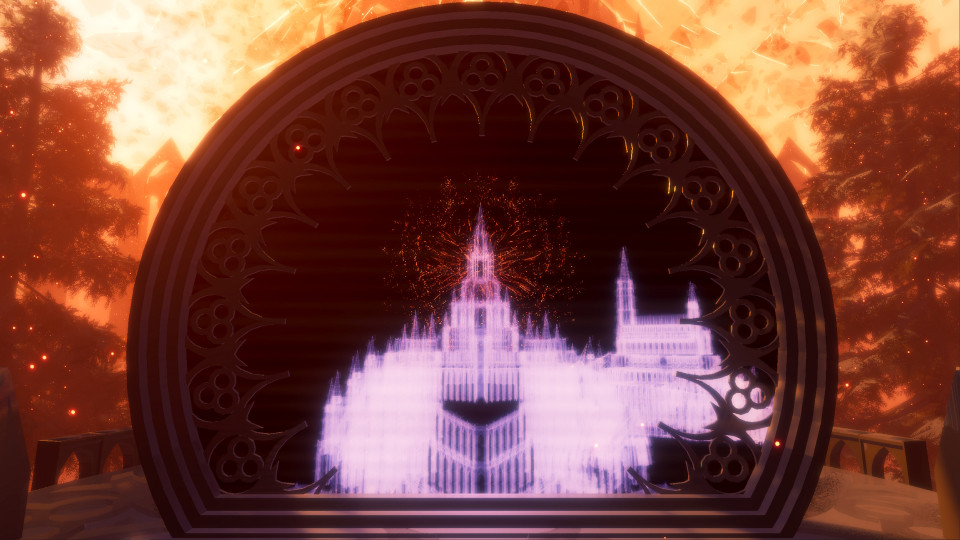 Technology of a Lost Age: Activate holograms to move massive portals between floors of crumbled cathedrals, allowing you to traverse structures which only partially exist in one time.